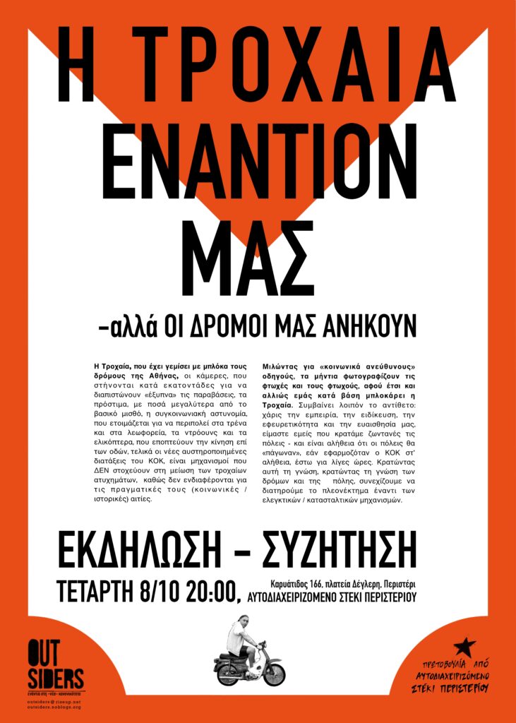 Εκδήλωση/Συζήτηση Τετάρτη 11/6 : Η τροχαία εναντίον μας, αλλά οι δρόμοι μας ανήκουν
